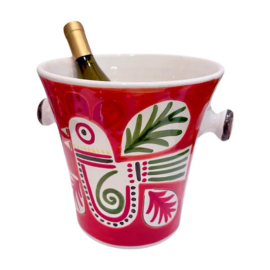 One of the most popular Deruta pottery designs sold at Biordi, is Geribi, the peacock feather ceramic design. The Ribigini family has been producing majolica for many generations. Gerardo owns the workshop. His Father organized a group of artists after the war and built a factory for 200 workers. When Gerardo was 15 he began his apprenticeship, and started the business at age of 20. Now Gerardo, and his daughter, Claudia, handpaints this stunning collection of piggy banks.