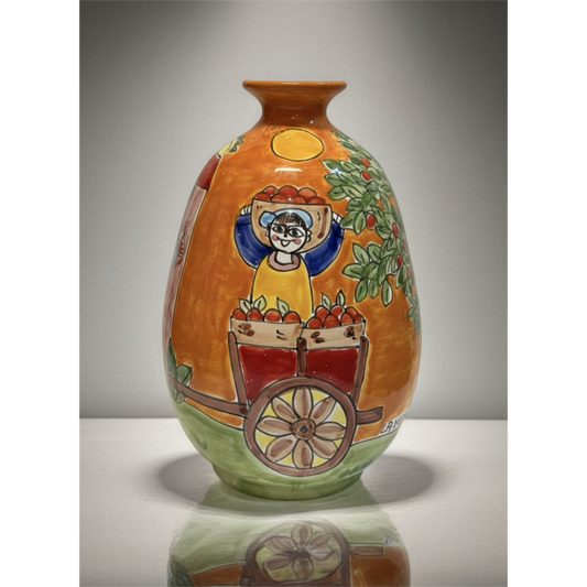 VINTAGE & COLLECTIBLE CERAMICS Hand-Painted Italian Harvest Scene Vase – La Musa Style