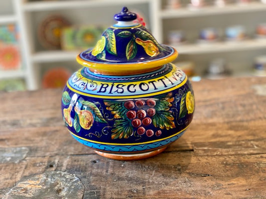 Collectible Majolica Round Biscotti Jar, B-57
