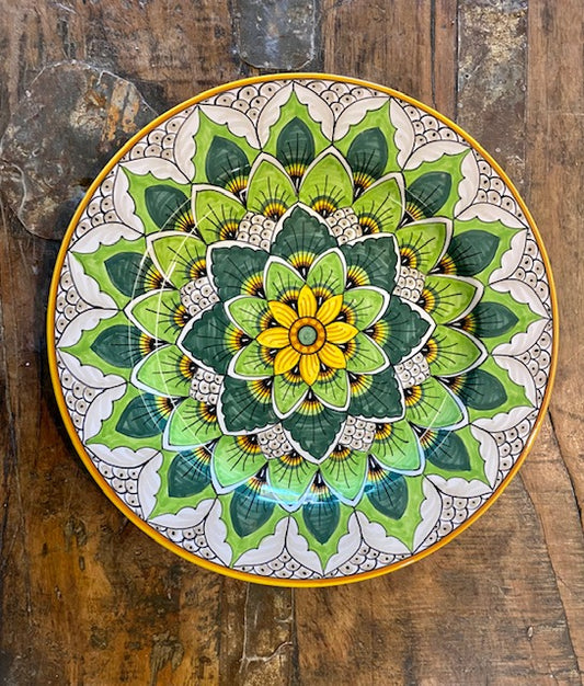 The Ribigini family has been producing majolica for many generations. Gerardo owns the workshop. His Father organized a group of artists after the ware and built a factory for 200 workers. When Gerardo was 15 his apprenticeship and started the business at the age of 20. Gerardo began as an apprentice at 15 years old. Now Gerardo, and his daughter, Claudia, hand-craft one of the most popular designs sold at Biordi, the peacock feather ceramic design. These patterns are special order. Allow 3 to 6 months to complete your special orders as each piece is made for you, and can also be personalized with your name and/or the occasion.