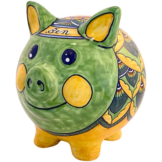 PRE-ORDER Personalize Piggy Bank Green & Yellow, Medium