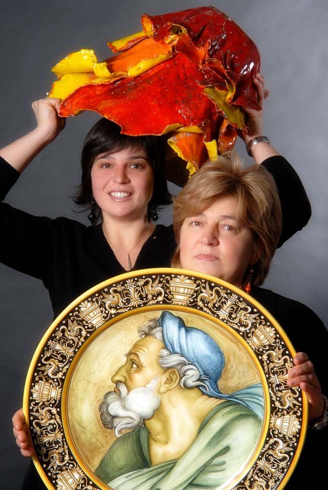 Francesca Niccacci is an internationally renowned artisan from Deruta, Italy known for her paintings of traditional Renaissance art, portraiture, mythological and historical themes. She studied with Romano Ranieri, a famous Deruta master, before beginning her own school.