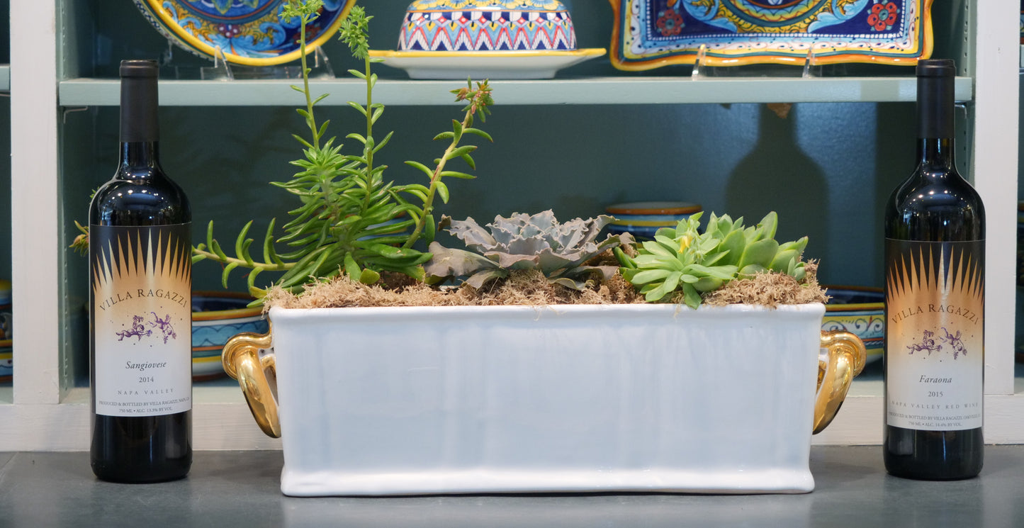 Ceramic White Planter with 12 karat Gold Ring by IDEart, made in Castelli, precariously perched on a capricious ridge of the Apennines. In the shadow of Gran Sasso works Antonio Di Francesco, shaping the same earth that occasionally wobbles his wheel and studio. Antonio’s works and the views – breathtaking!