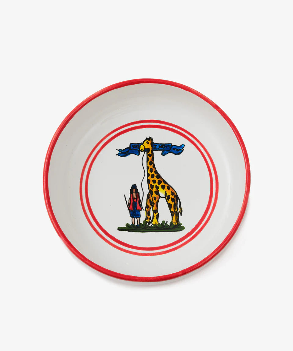 Contrade Italian Dinnerware is available in all 17 District Designs and each design is available in eight different products. The Giraffe (Giraffa), for centuries has represented the "Rione della Giraffa" during the Palio horse race. "Rione" stands for Neighborhood. The Contrade Italian Ceramics are handcrafted in Siena, Italy.