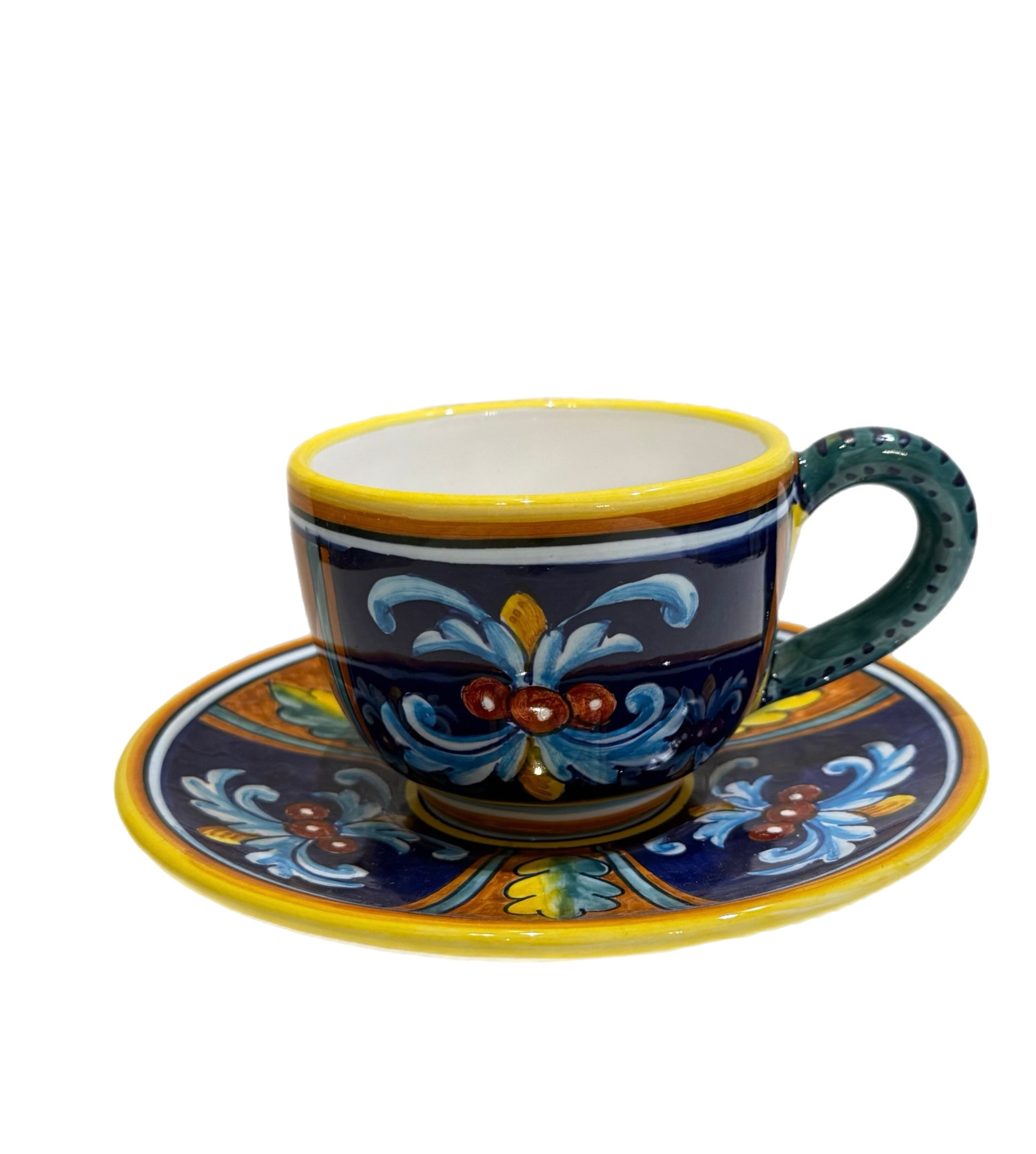 Biordi Art Imports offers the largest selection of handcrafted espresso, cappuccino, and latte cups in the United States, with designs that coordinate seamlessly with Eugenio Ricciarelli’s full range of majolica pottery. Whether displayed in your home or used in your café, these cups add a touch of Italian elegance to any setting.