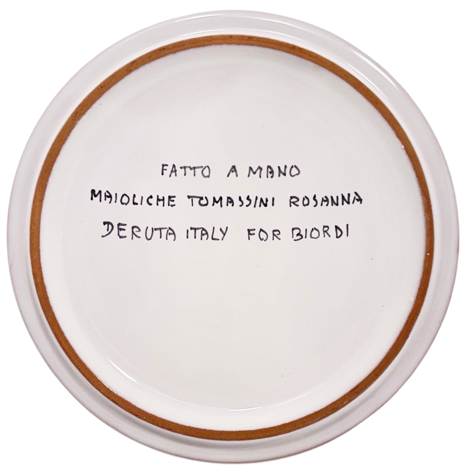 Tomassini is a family owned workshop in the hills of Deruta. Father, wife and son work together creating the most beautifully painted highly functional Italian majolica utensils, pepper grinders and glassware.