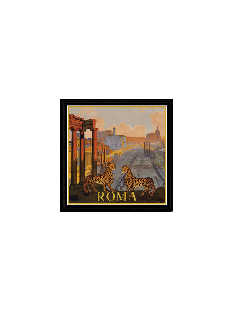 The Ortigia Sicilia Roma Tray is a compact masterpiece crafted in Italy using traditional lacquer techniques. Its detailed design showcases the iconic Sicilian symbols—leopards beside palm trees—set against a rich, warm background, lending Mediterranean elegance to any surface.