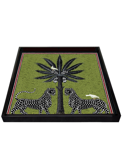 Introducing the Ortigia Sicilia Tray Square Green — meticulously handcrafted in Italy using traditional lacquer techniques. Measuring 10" x 10" x 1", its glossy surface beautifully highlights rich blue tones, making it a standout piece in any space.