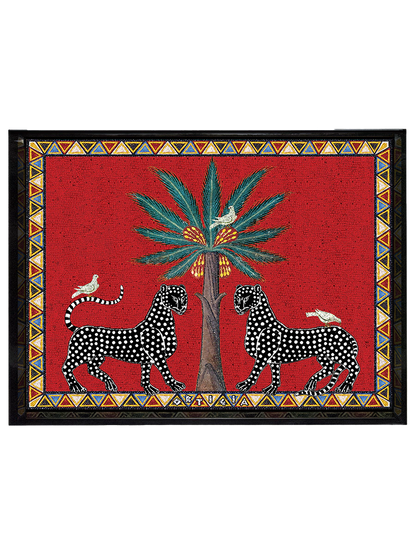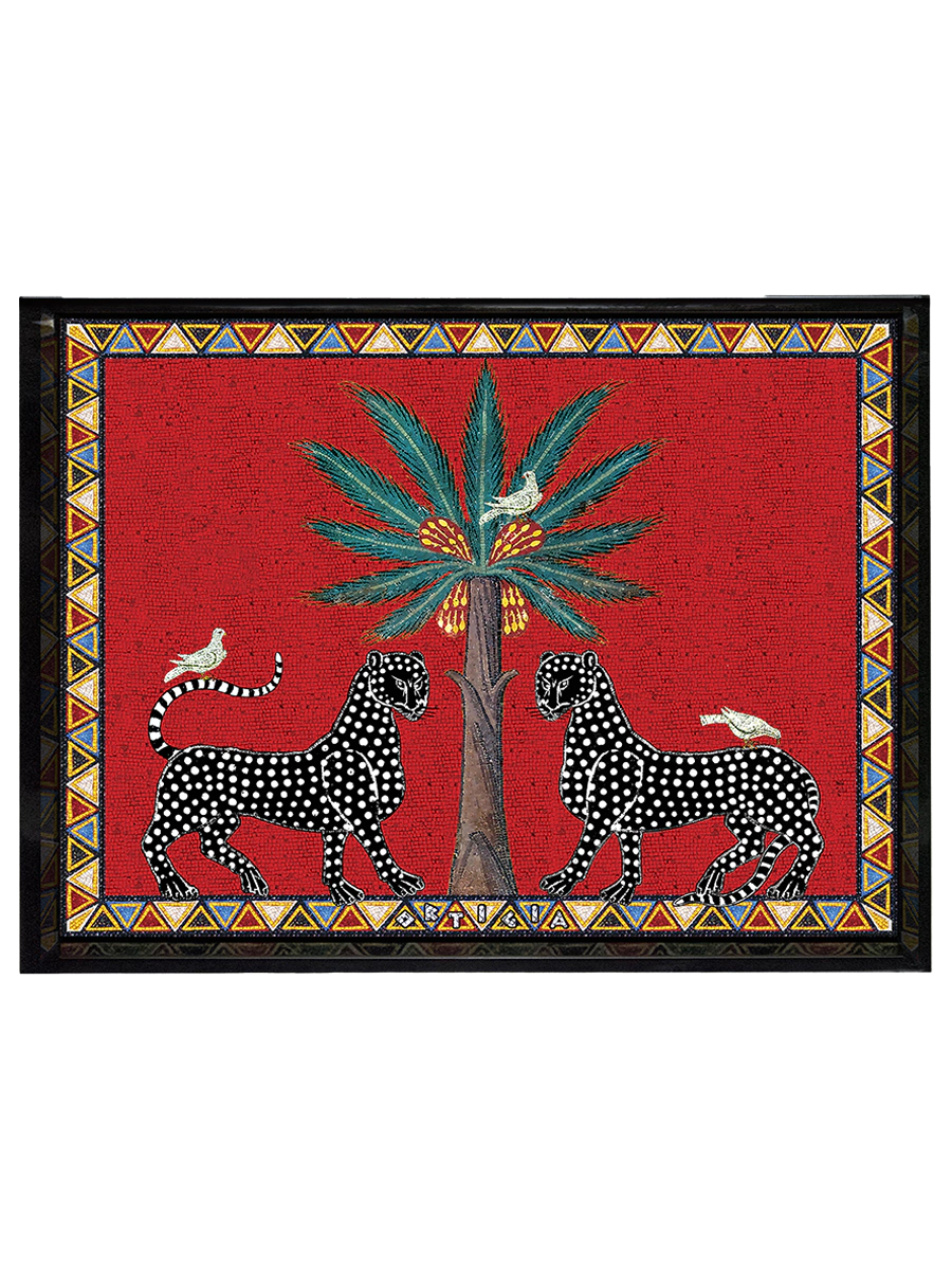 Introducing the Large Red Mosaico Tray from Ortigia Sicilia’s Mosaic Collection. Expertly handcrafted in Italy using traditional lacquer techniques, this tray boasts vibrant red tones and a striking leopard-and-palm motif that draws inspiration from classic Sicilian mosaic artistry. No two trays are identical—a testament to true artisanal craftsmanship.