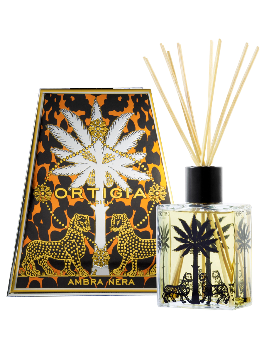 Featuring natural rattan reeds and Ortigia’s elegant signature bottle, this diffuser provides a flame-free and even scent release. The reeds carry the amber-spice blend upward to scent any room effortlessly.