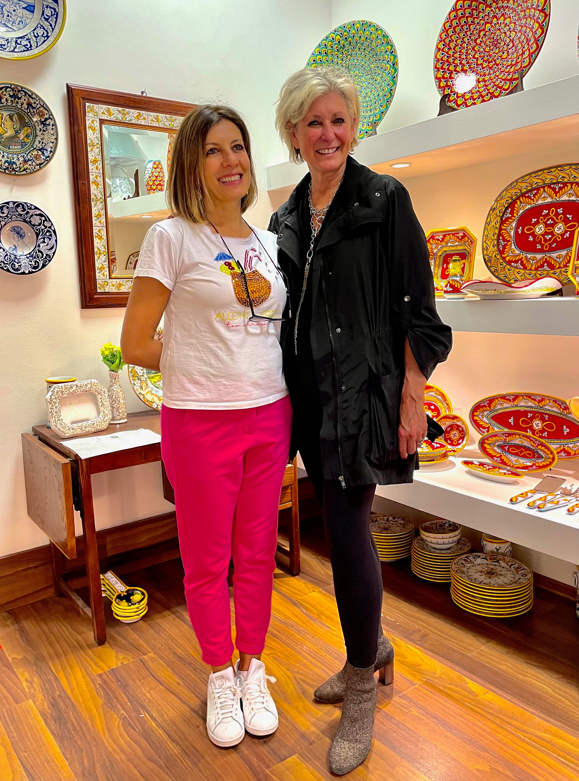 In old town of Deruta, nestled on the hilltop, stands Pia’s ceramic shop. Inside, Pia Formato, a master glazer known for her grand technical grasp, innovative designs and uncommonly vibrant colors, began twenty years ago with her interpretation of Eugenio’s geometric patterns. What has now become known as “Pia’s Red” is a vibrant red that results from a great deal of professional glazing skill. Pia’s patient endeavor showcased in all her works bring any table, any room and a mere meal to an occasion.