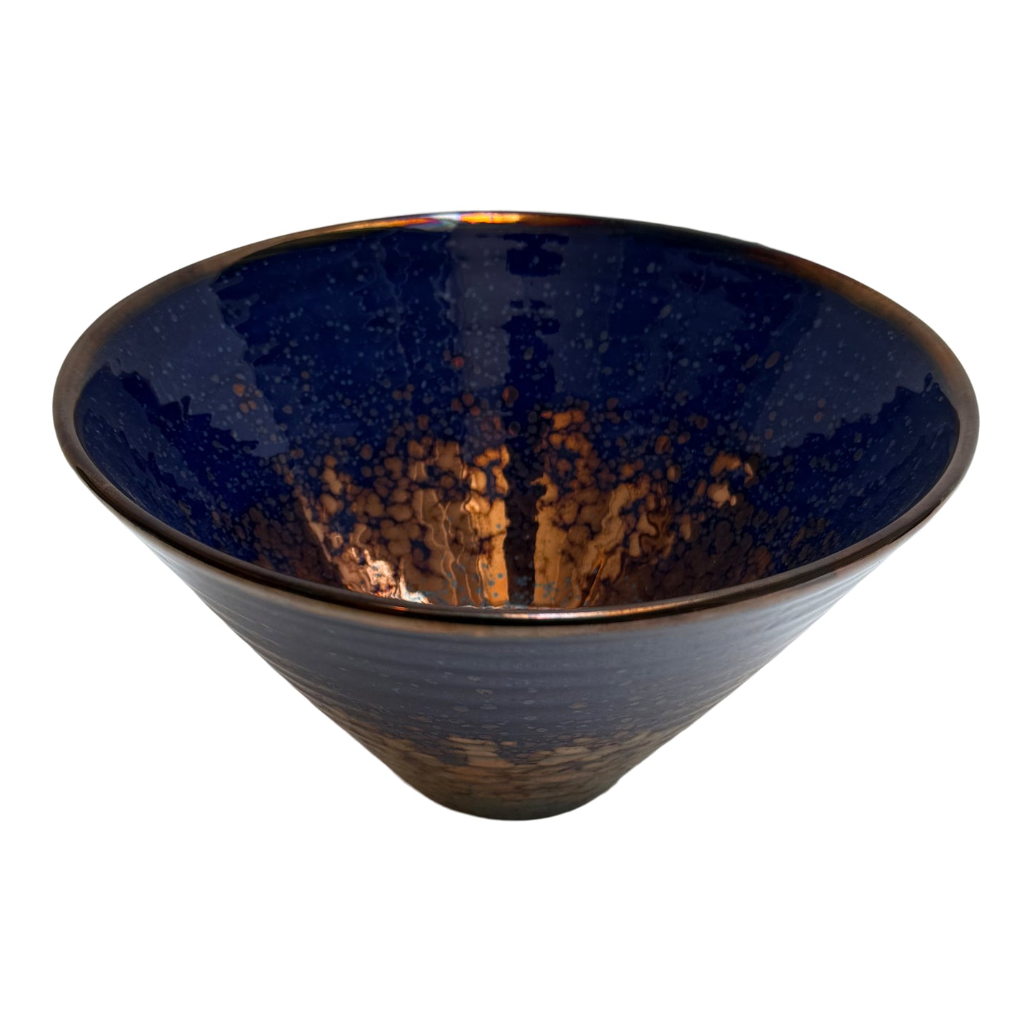 Vignoli Conical Ceramic Bowl – Deep Blue with Copper Sheen