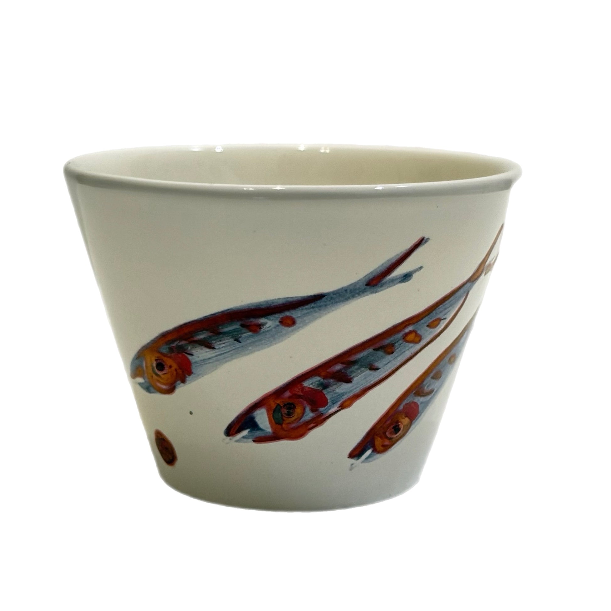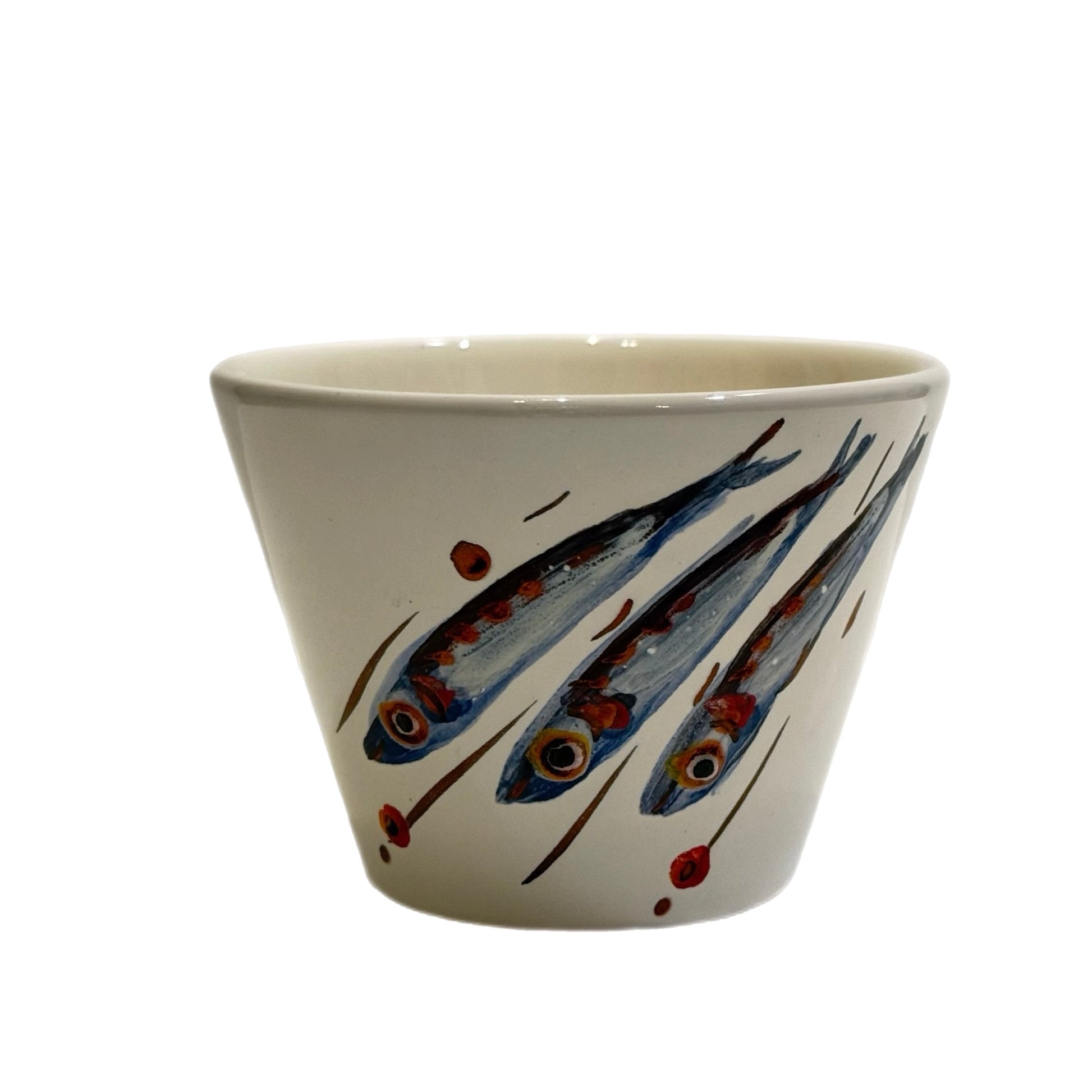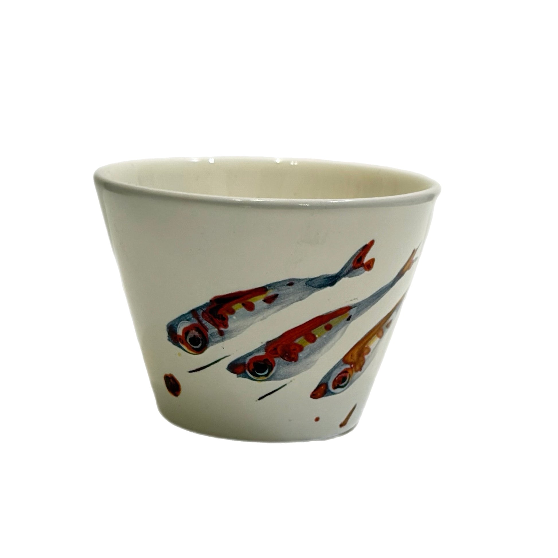 Elevate your coffee experience with this handcrafted Vignoli ceramic cup, featuring a stunning hand-painted anchovy design. Perfectly sized for a rich espresso, macchiato, sake or as a bowl to serve your favorite snack, this artisanal piece blends functionality with Italian craftsmanship.
